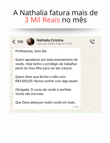 Eu acredito que você não quer mais viver assim. Você merece ter uma renda própria, trabalhando em casa, perto dos seus filhos, sem precisar de grandes investimentos.