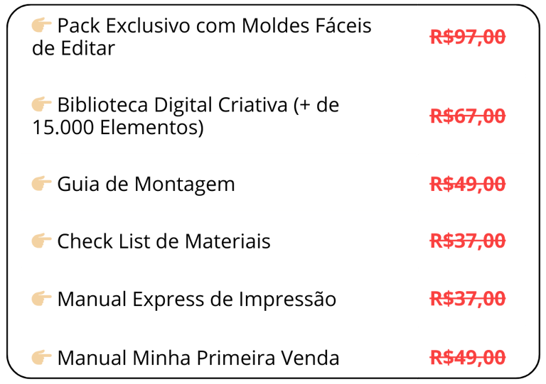Mas agora você pode ter acesso ao Iniciando na Papelaria Personalizada junto com todos os bônus por apenas:
