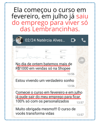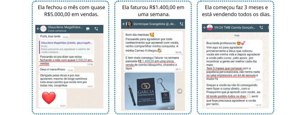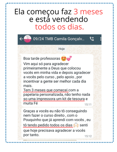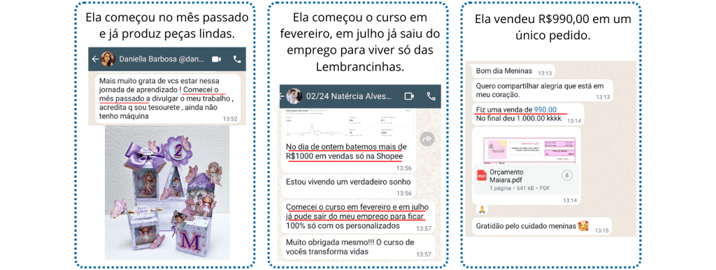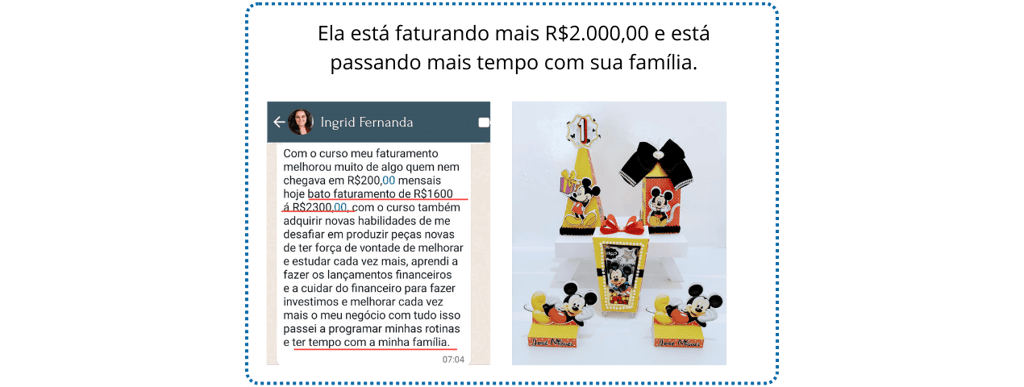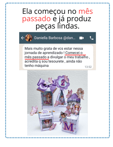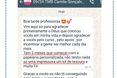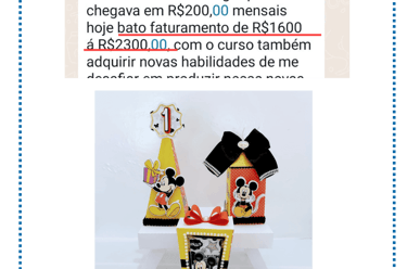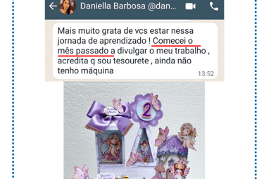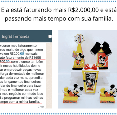 Hoje são mais de 9 mil alunas faturando com lembrancinhas e personalizados de festa. Além disso, construímos uma comunidade com mais de 800 mil seguidores, mostrando na prática que esse é um dos mercados mais lucrativos e acessíveis do Brasil.