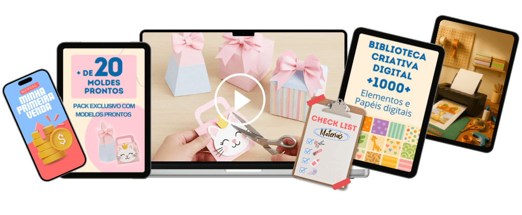 Liberando o seu acesso ao Guia Faturando em Casa com Lembrancinhas de Festas, ainda hoje você poderá começar a criar suas primeiras peças para vender imediatamente.