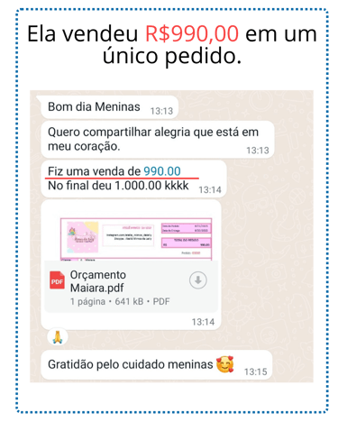 Você aplica as estratégias para divulgar e já fechar seu primeiro pedido em poucos dias.